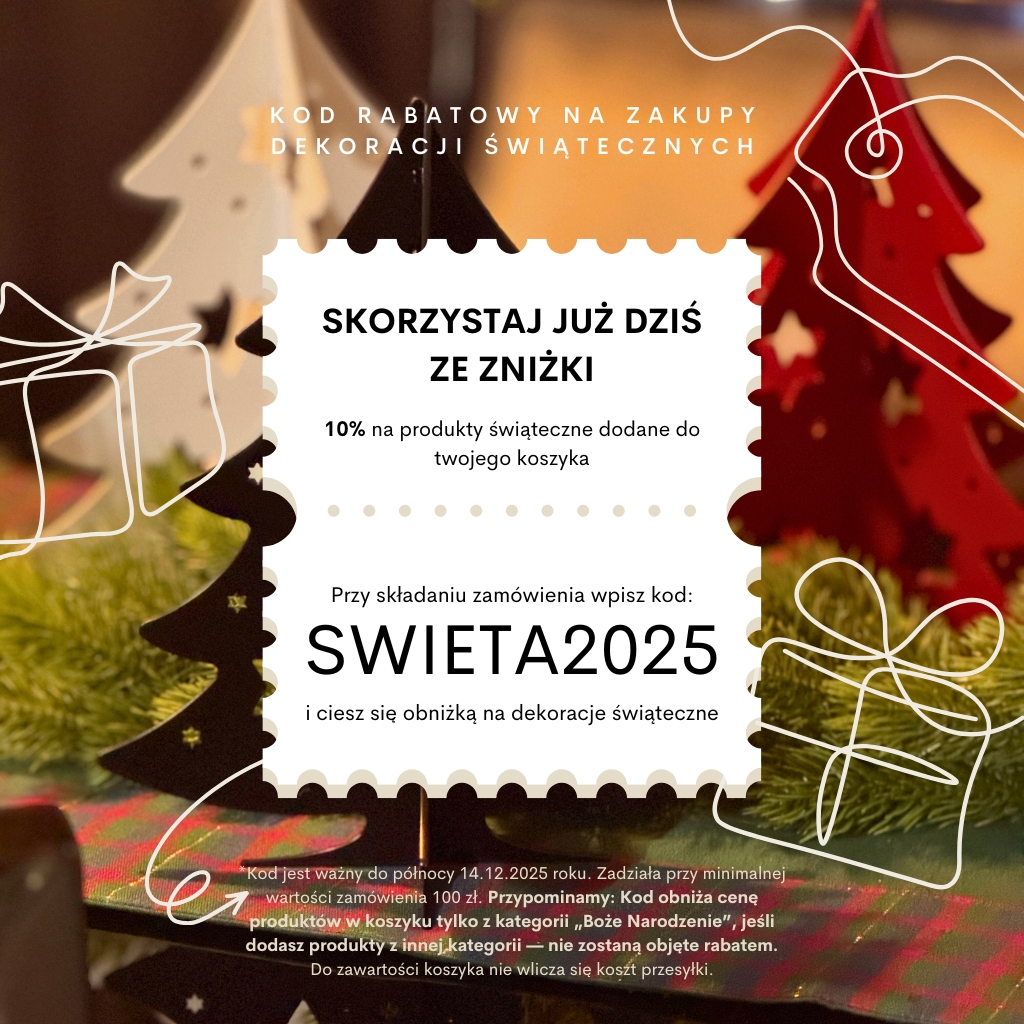 Oprócz ozdób codziennuch znajdziesz u nas jeszcze metalowe ozdoby sezonowe, które zachwycają jakością, trwałością i nietypowym designem. Dzięki technologii precyzyjnego cięcia laserowego, każda dekoracja to wyjątkowa ozdoba na Boże Narodzenie, Wielkanoc, a także inne święta i okazje. Oferujemy szeroki wybór wzorów: od klasycznych motywów choinkowych, przez nowoczesne zawieszki wielkanocne, i uniwersalne dekoracje, które mogą być całoroczne.